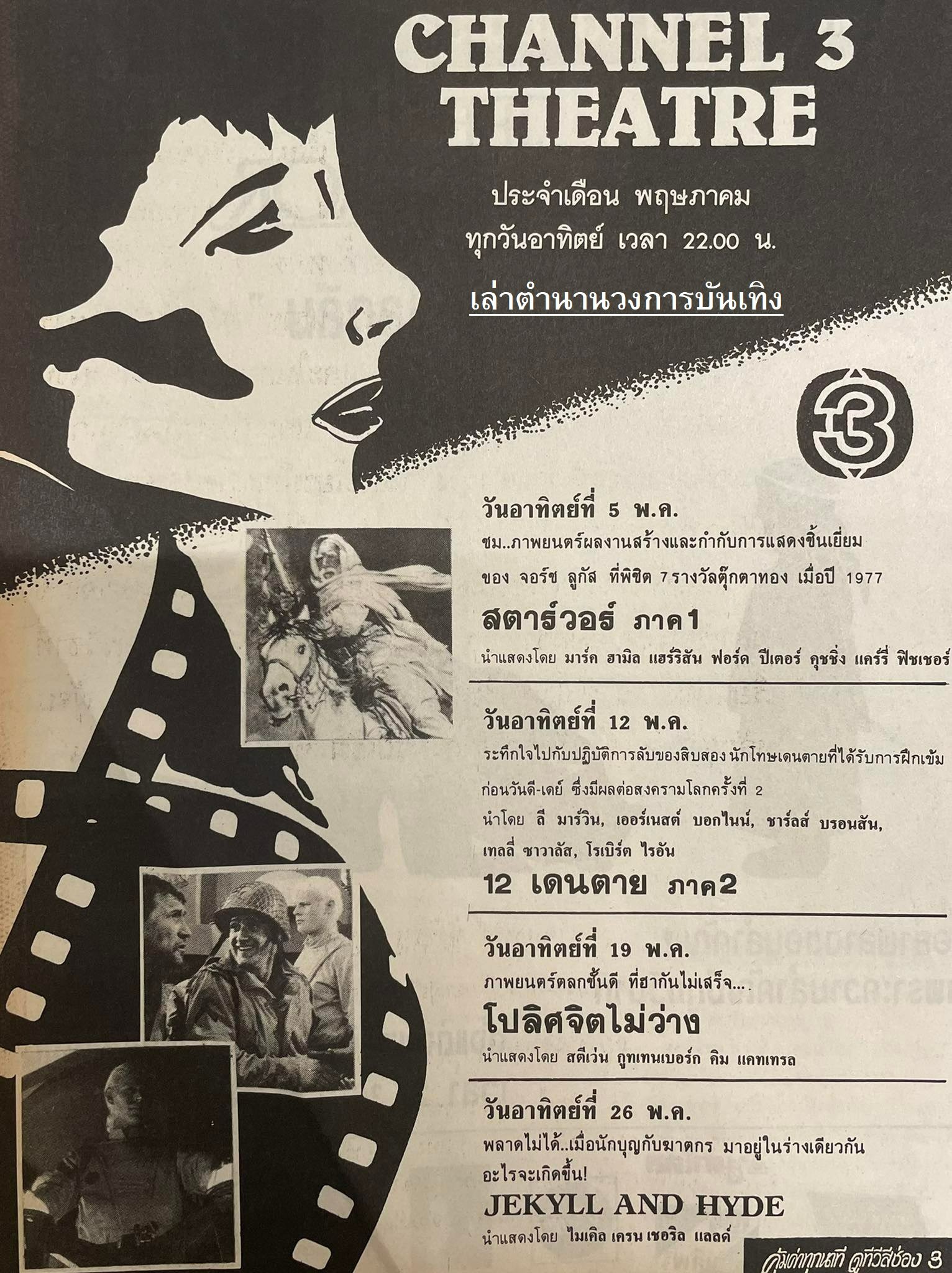 โฆษณาภาพยนตร์ที่ฉายในช่วงของ CHANNEL 3 THEATRE เมื่อปี พ.ศ. 2534