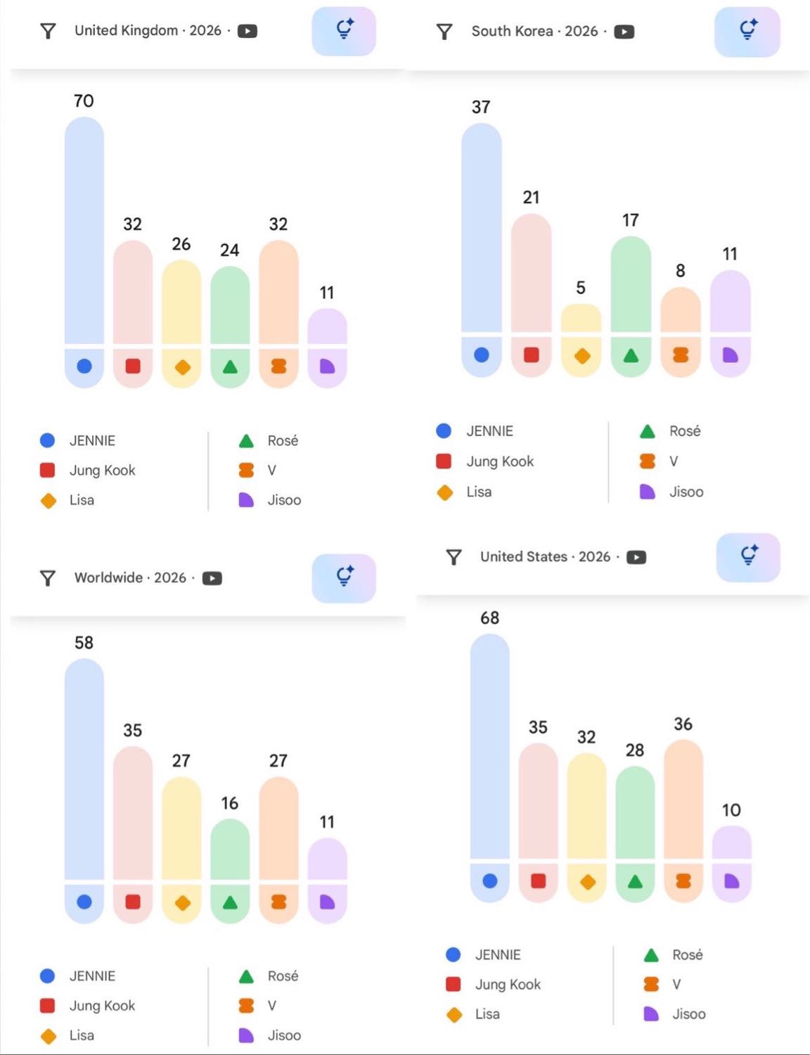 JENNIE เป็นไอดอลเคป็อปที่ถูกค้นหามากที่สุดทั่วโลกบน YouTube ในปีนี้ รวมถึงในตลาดเพลงชั้นนำ
