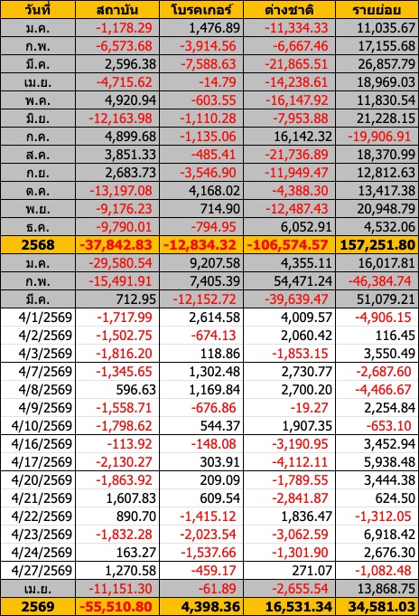 Sinthorn Summary 27/4/2569 : ต่างชาติซื้อสุทธิ 271.07 ลบ.