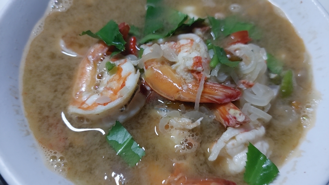 เมนูอาหารที่เป็นกระแสนิยมมาช่วงหนึ่ง เป็นอาหารพื้นบ้านยอดนิยมมาจากชุมชนปากรอ จ.สงขลา ทำง่ายไม่ต้องมีเครื่องสมุนไพร พวกข่าตะไคร้ใบมะกรูด ใช้แค่หอมแดงพริกขี้หนู แล้วก็มะม่วงเบาซอยให้เป็นรสเปรี้ยว ใสแค่กุ้งซึ่งเป็นวัตถุดิบที่ฟาได้ง่ายในท้องถิ่น เป็นอาหารที่ทำง่ายแบบมีเอกลักษณ์เฟฉพาะตัวที่ไม่เหมือนใครอีกเมนูนึง มาครับ ไปทำพร้อมๆกันได้เลย