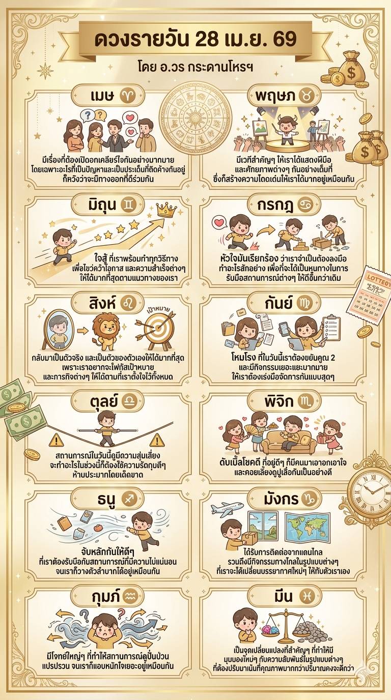 Ψ ☀ ดวงวันนี้ 28 เมษายน พ.ศ. 2569 โดย อ.วร กระดานโหรฯ ☀ 卐