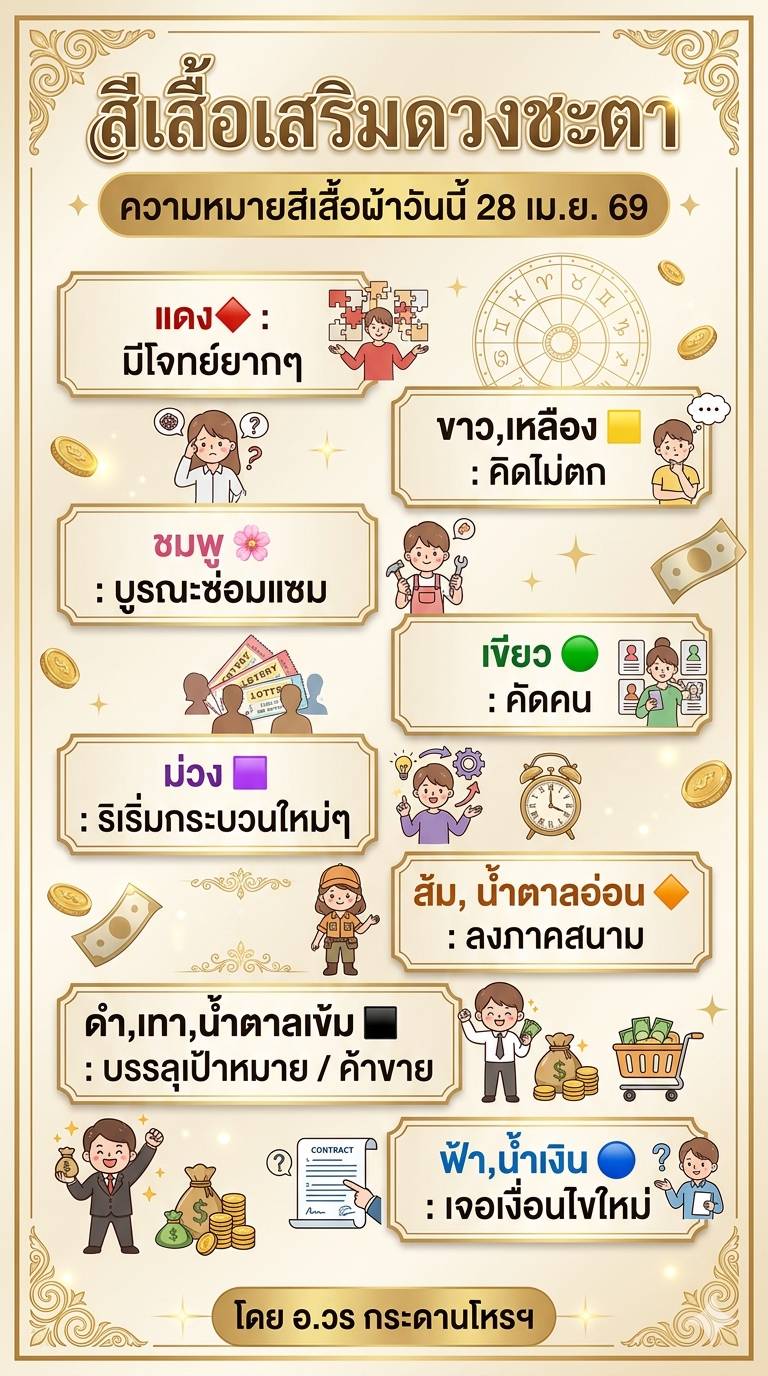 ความหมายสีเสื้อผ้าวันนี้ 28 เม.ย. 69