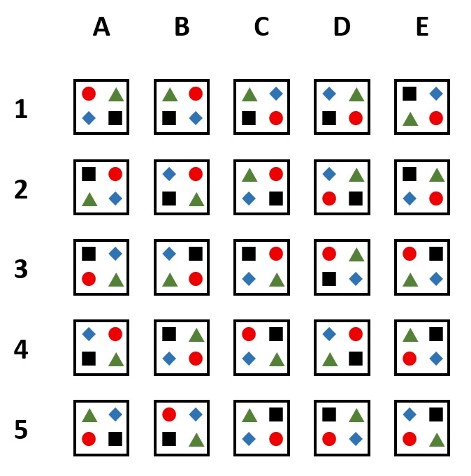 (มีเหมือนกันแน่นอน เพราะการจัดสัญลักษณ์ 4 อย่าง ใส่ลงใน 4 ช่อง จะมี 24 วิธี ดังนั้นต้องมีอย่างน้อยคู่หนึ่งที่ซ้ำกันแน่ ๆ)