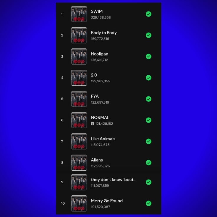 เพียงชุดแรกและชุดเดียว ที่มีเพลง 10เพลง ทะลุ100ล้านสตรีมบน Spotify 🔥”