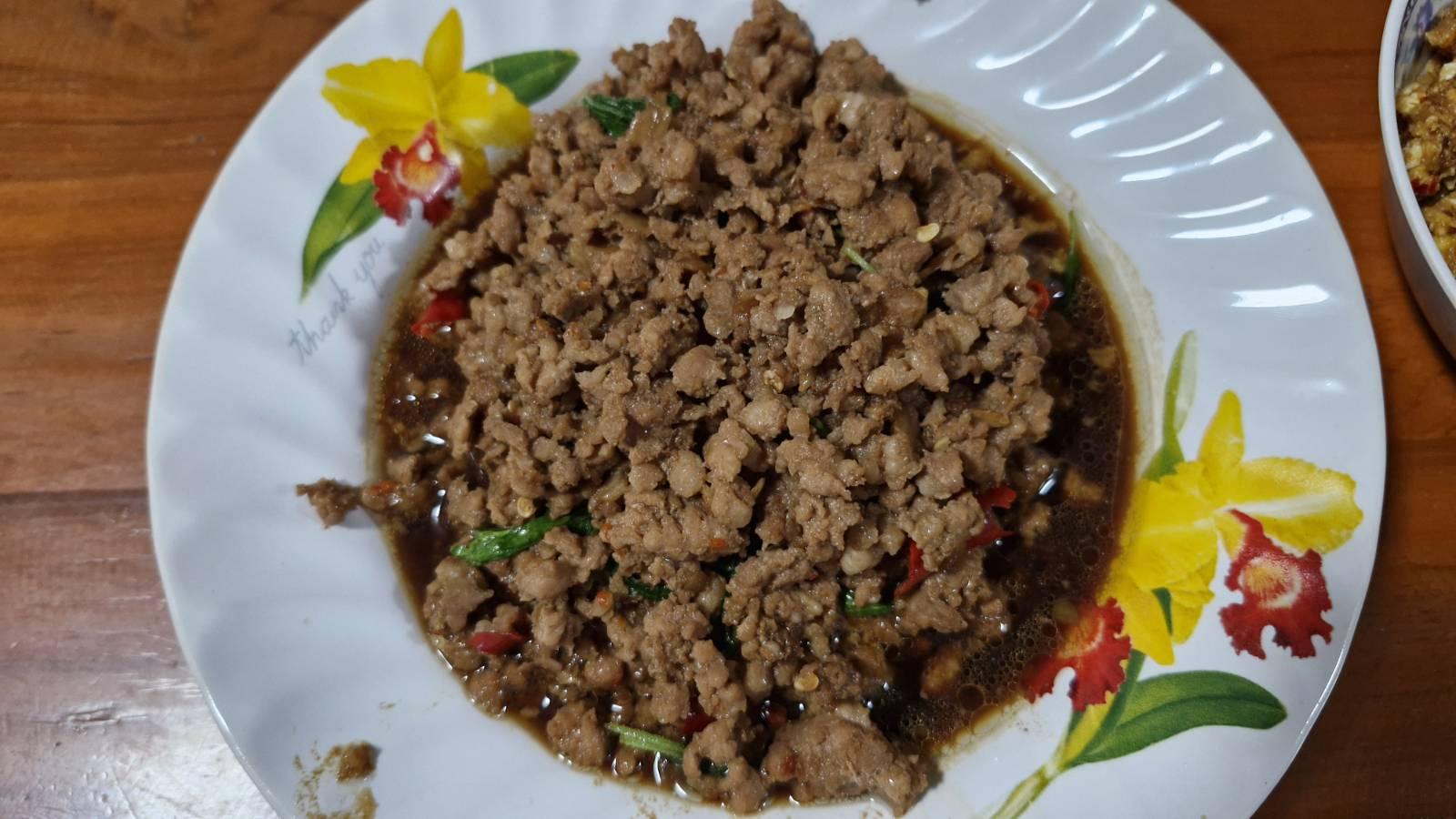 สวัสดีค่ะ มื้อกลางวัน วันนี้ กับเมนูผัดกระเพรา จานแรกเผ็ดหน่อย🌶️ บวกเพิ่มไข่ต้ม ข้าวผัดกระเพราหมูสับผัดแห้งหน่อย+ไข่ต้ม จานนี้เผ็ดน้อย ของเจ้าของกระทู้เองค่ะ ผัดต่อจากจานแรกใส่เพิ่มแค่กระเทียม +พ