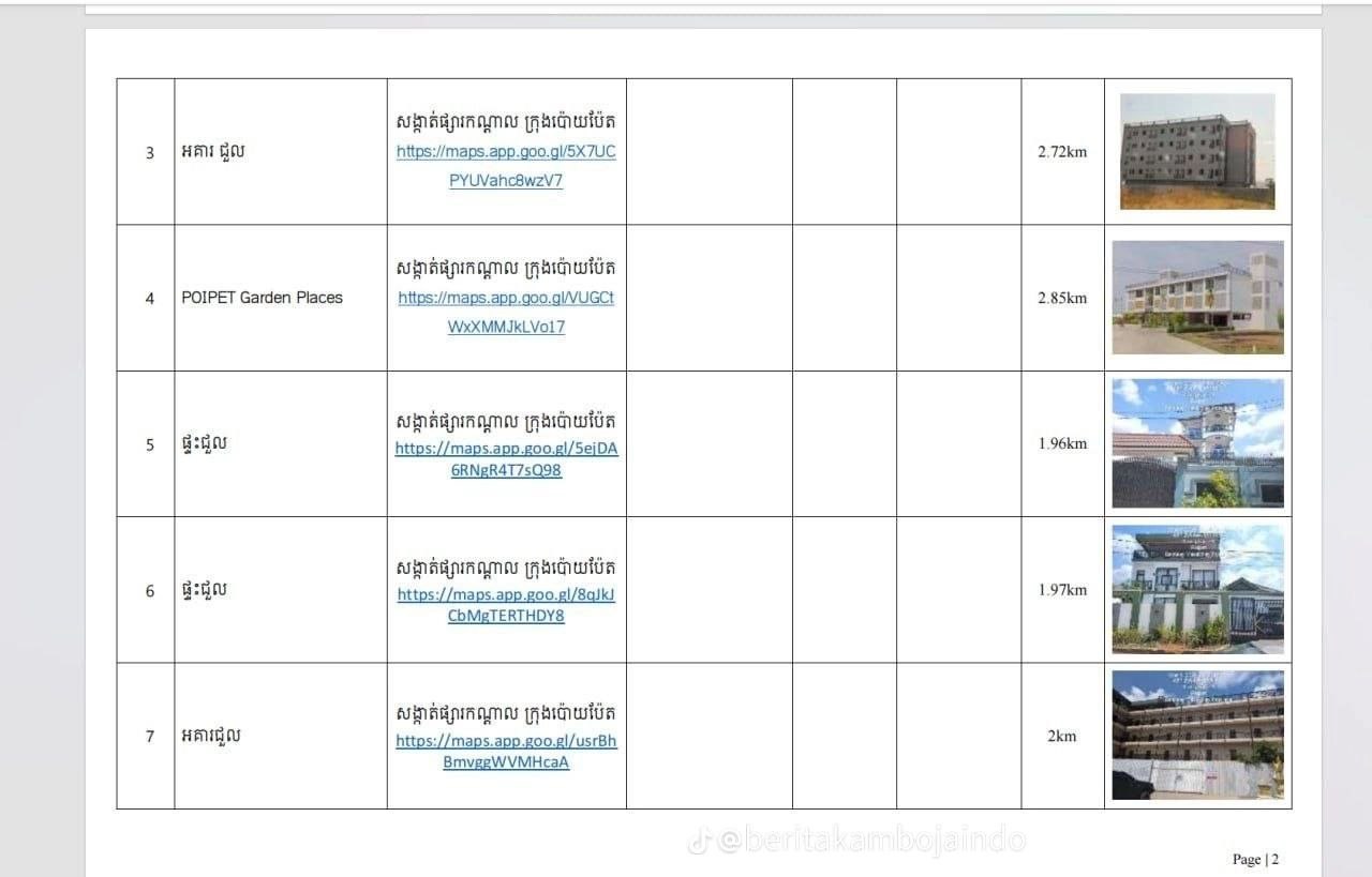 3-7: อาคารเช่าและบ้านเช่า รวมถึงโครงการ Poipet Garden Places