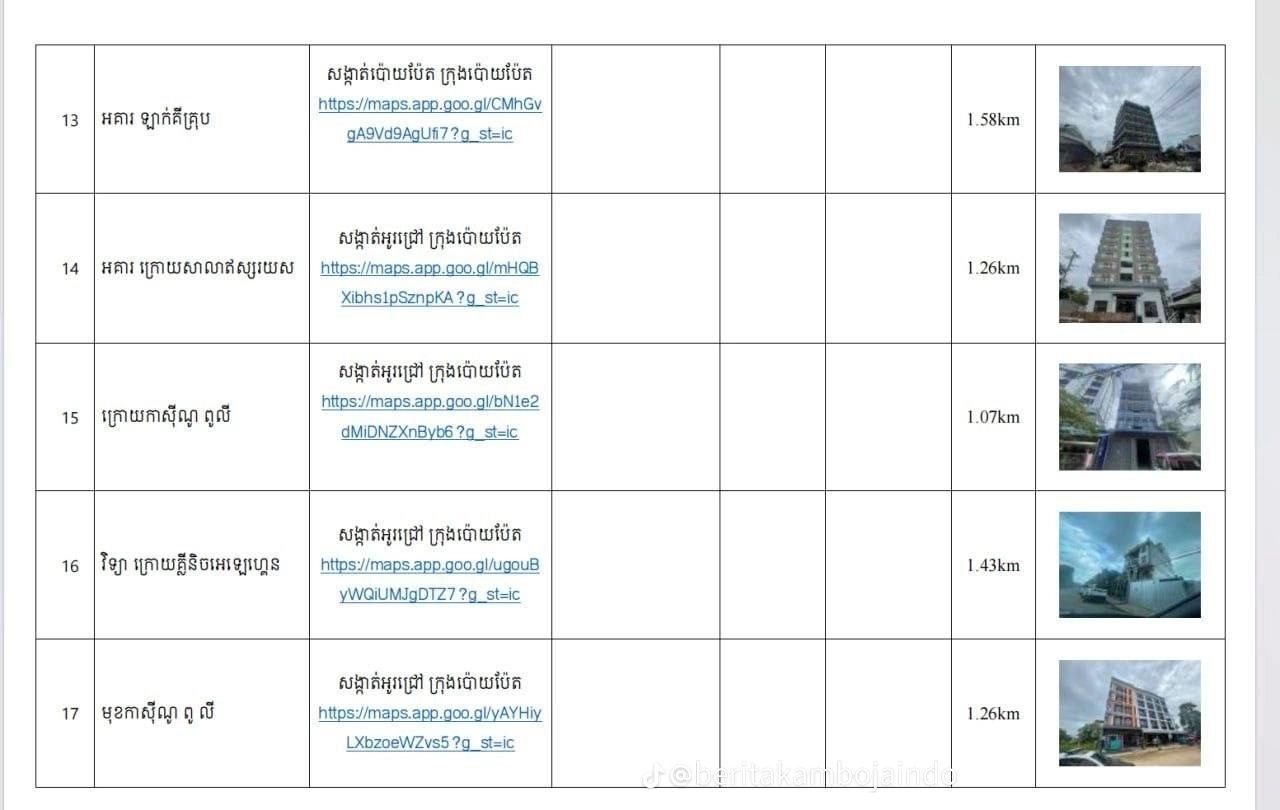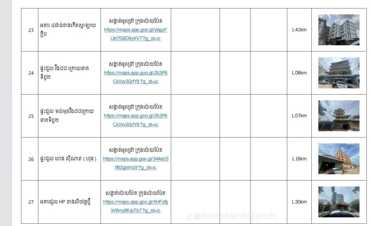 นี่คือ47แห่งที่ตำรวจพนมเปญส่งมาจับมิจฉาชีพที่ปอยเปตและสถานการที่คนไทย300คนโดนจับและผู้ว่าปอยเปตคนใหม่ไฟแรงมาสร้างผลงานนะ