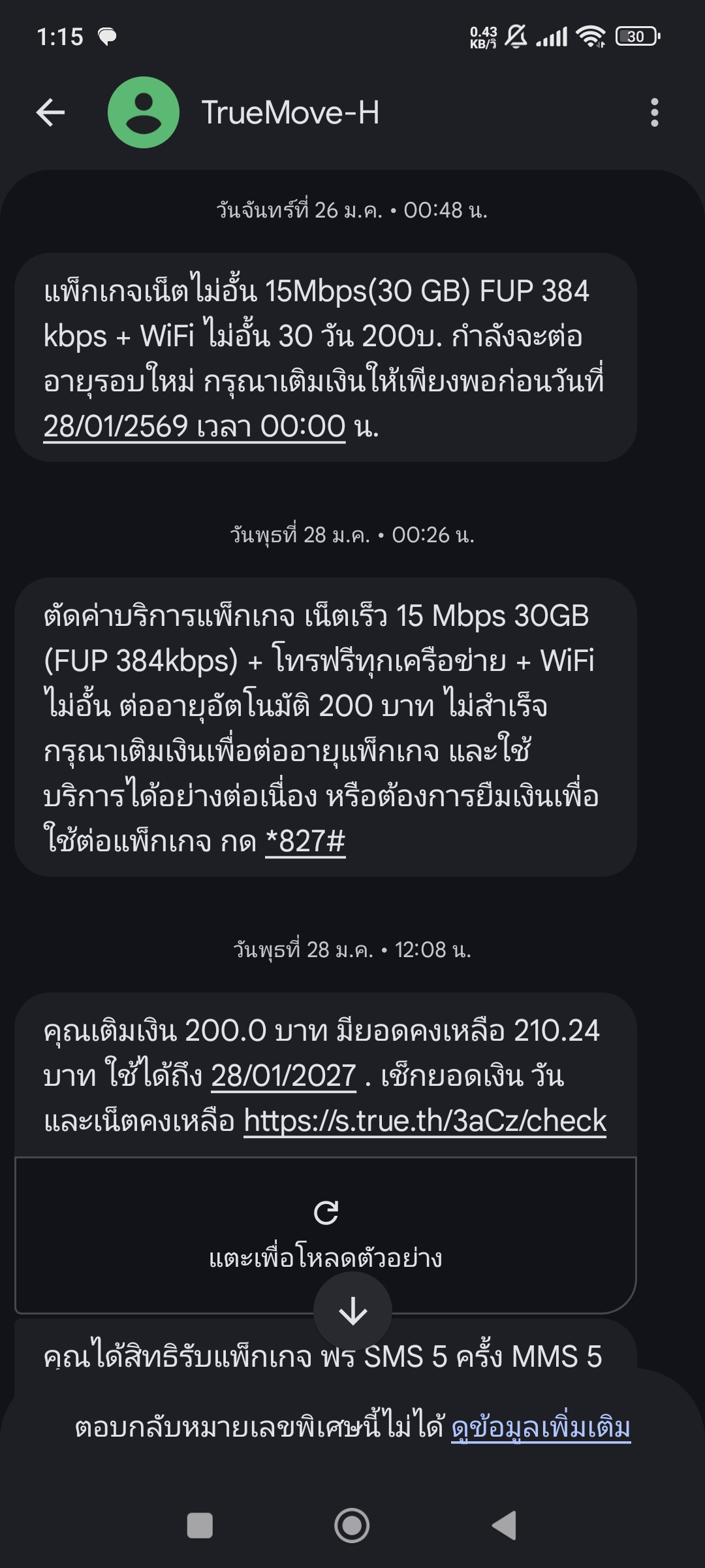สวัสดีค่า ปกติใช้แพ็คเกจเดิมเน็ต 30 GB 1 เดือน 200 บาท เวลาเติมเงินไม่พอจะขึ้นว่าตัดไม่สำเร็จแต่พอเติมเงินเข้าไปก็ตัดโปรเดิมปกติ (200 บาท) แต่พอวันนี้เรามีเงินประมาณ 100 บาท ทรูเลือกที่จะตัดเงินไป 100 แล้วเปลี่ยนแพ็คเกจเป็น 15 GB 15 วัน ก็เลยสงสัยว่า