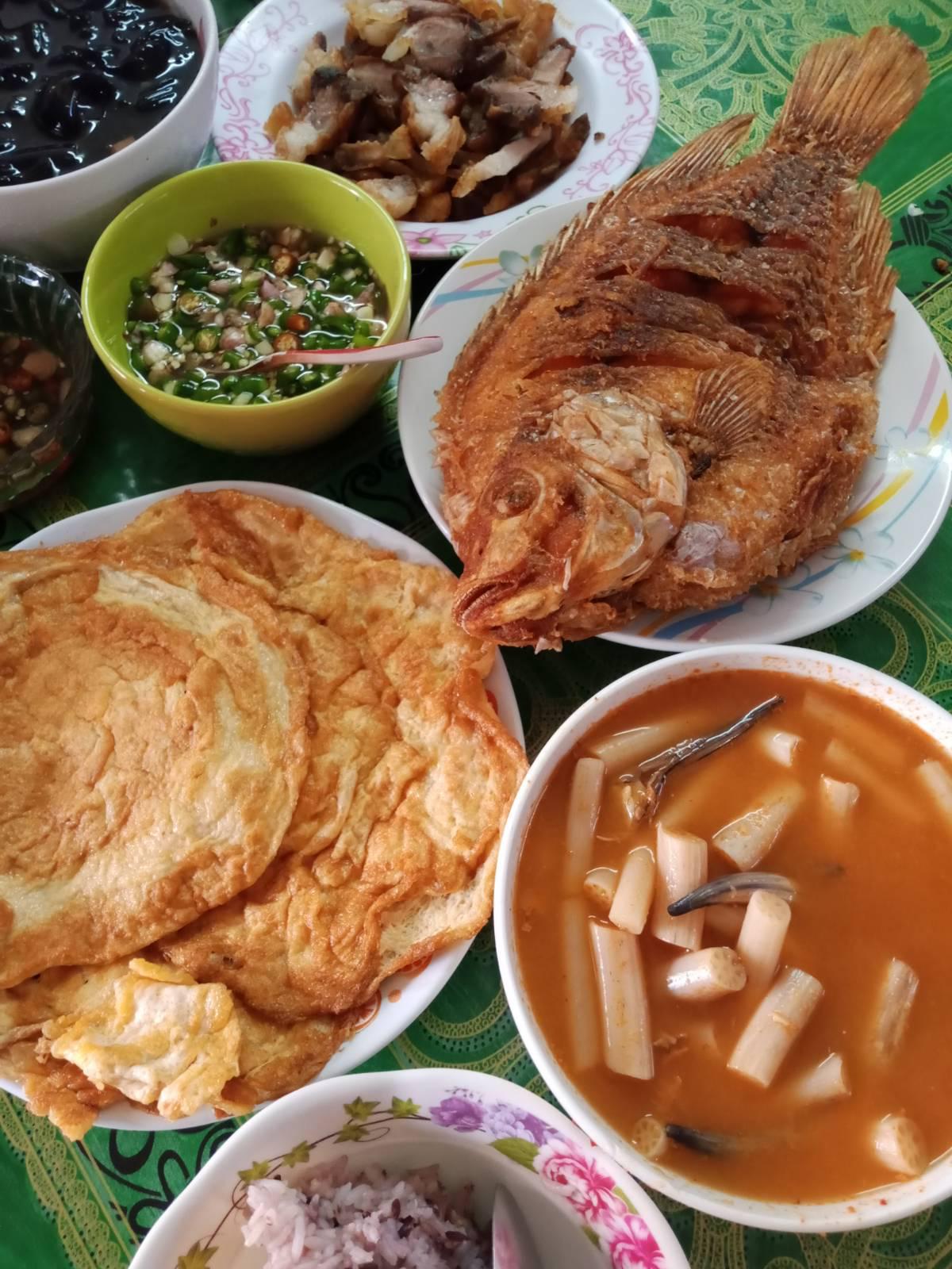 แกงส้มไหลบัว ปลาทอด และ ไข่เจียว