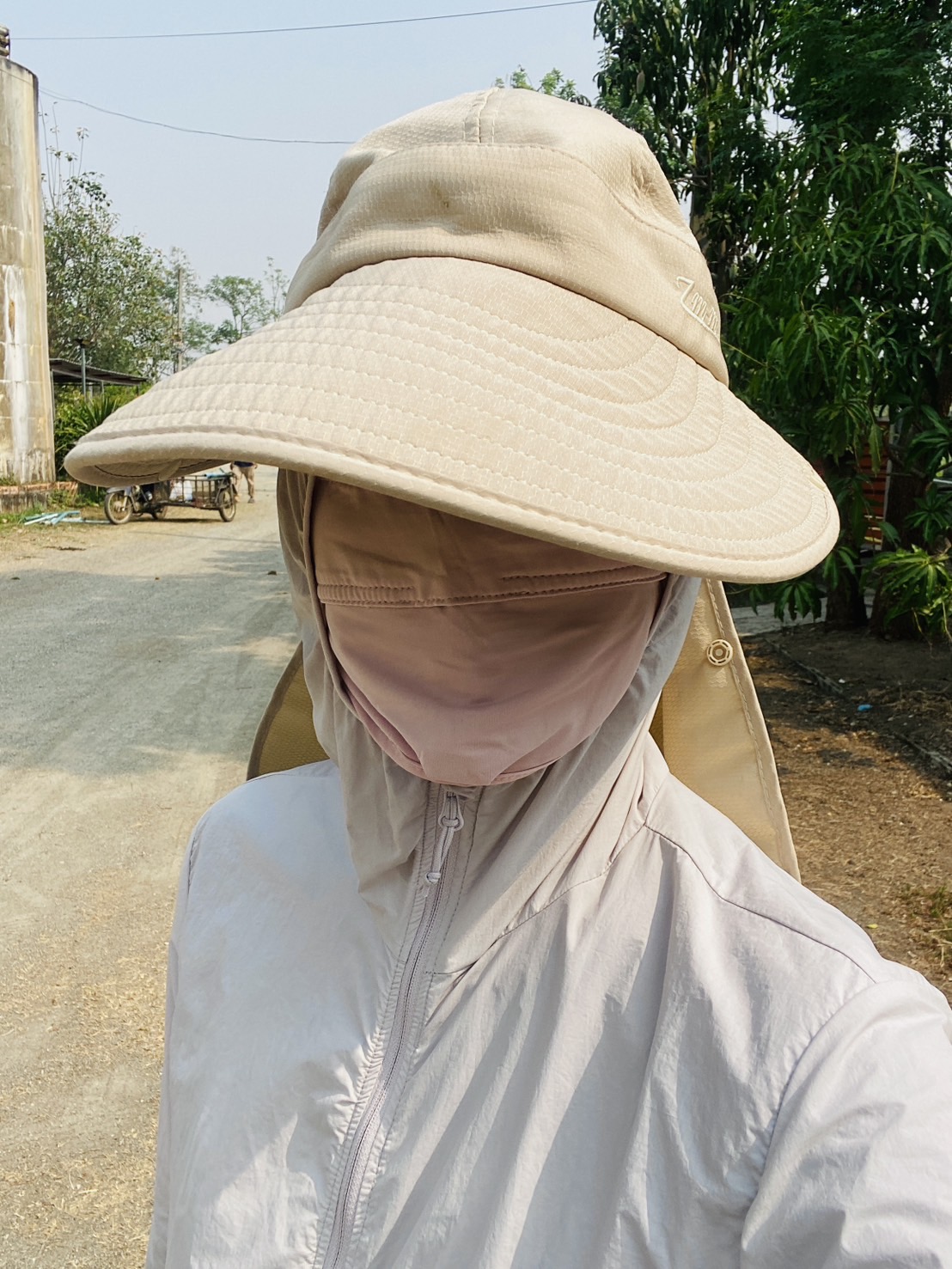 ใส่เสื้อแขนยาวและกางเกงขายาว +แว่นกันแดด +หมวกที่สามารถปกปิดได้มิดชิด