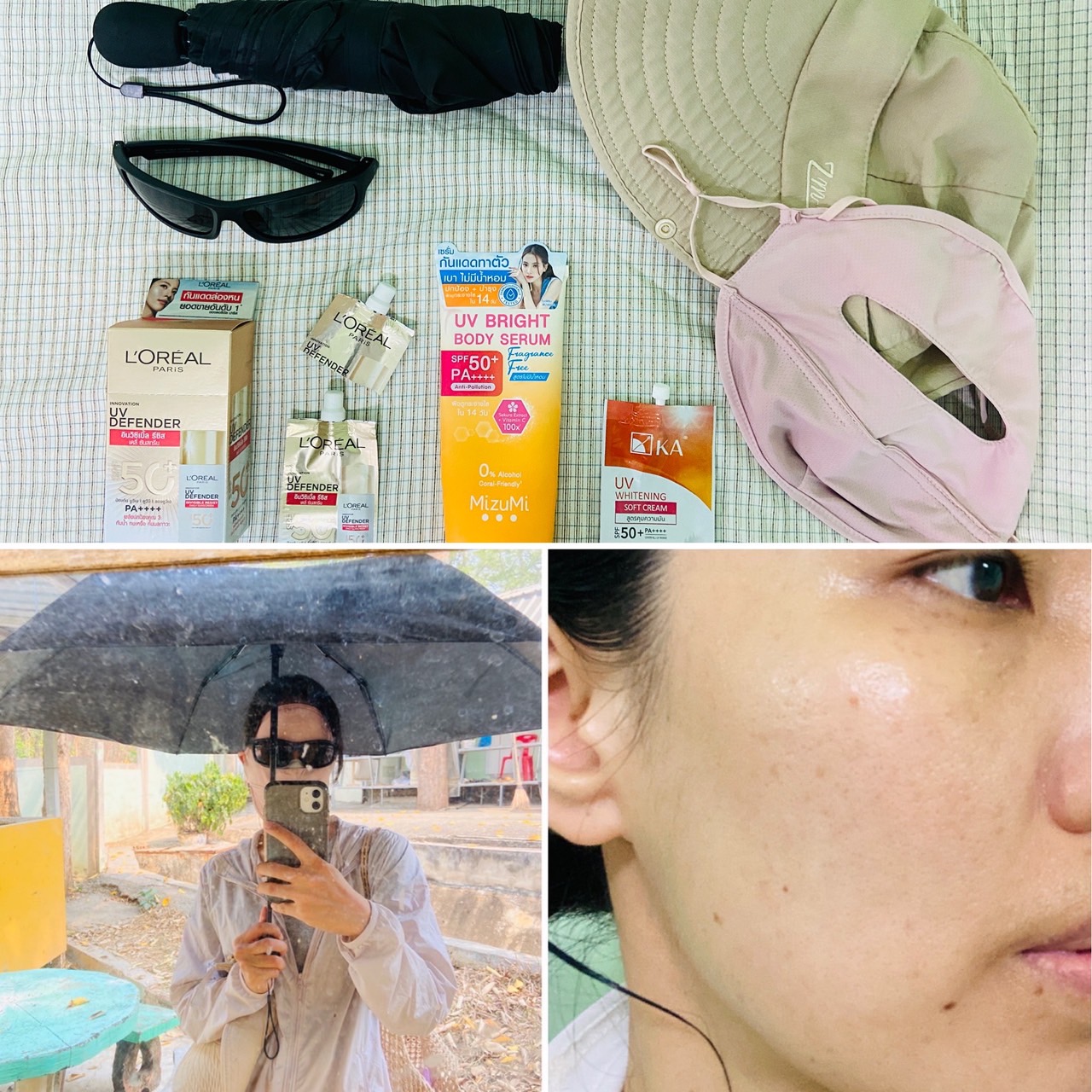 เลยจัดครบเซ็ต ทั้งครีม และ อุปกรณ์กันแดด (สำคัญน้า) เพราะลำพังแล้วครีมกันแดดเอาไม่อยู่แน่นอน