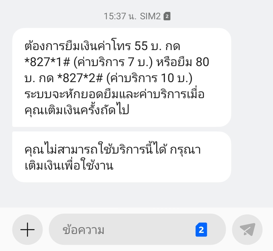 ยืมเงินทรูไม่ได้ค่ะ ทั้งที่มีข้อความแจ้งให้ยืมเงิน