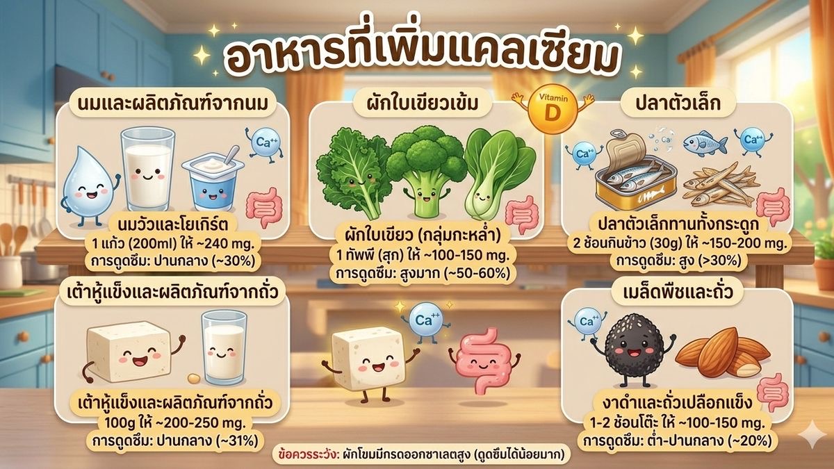 🥛 อาหารเพิ่มแคลเซียม: เลือกอย่างไรให้ดูดซึมได้ดี?