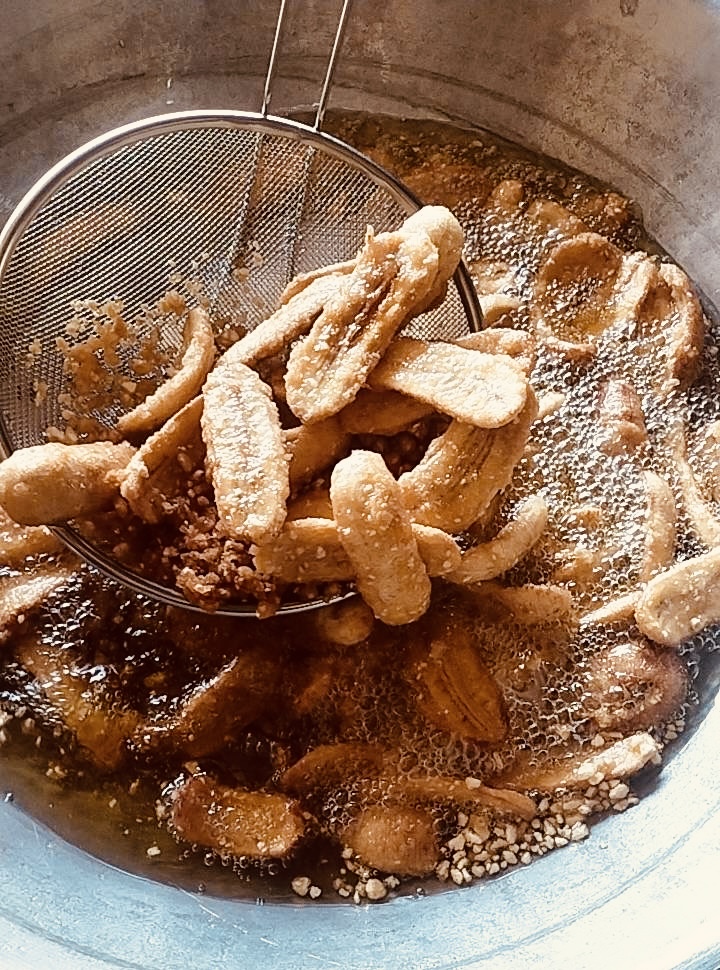ตั้งแต่การหั่นกล้วยให้ชิ้นใกล้เคียงกัน การคุมไฟทอดยังไงให้สีสวย