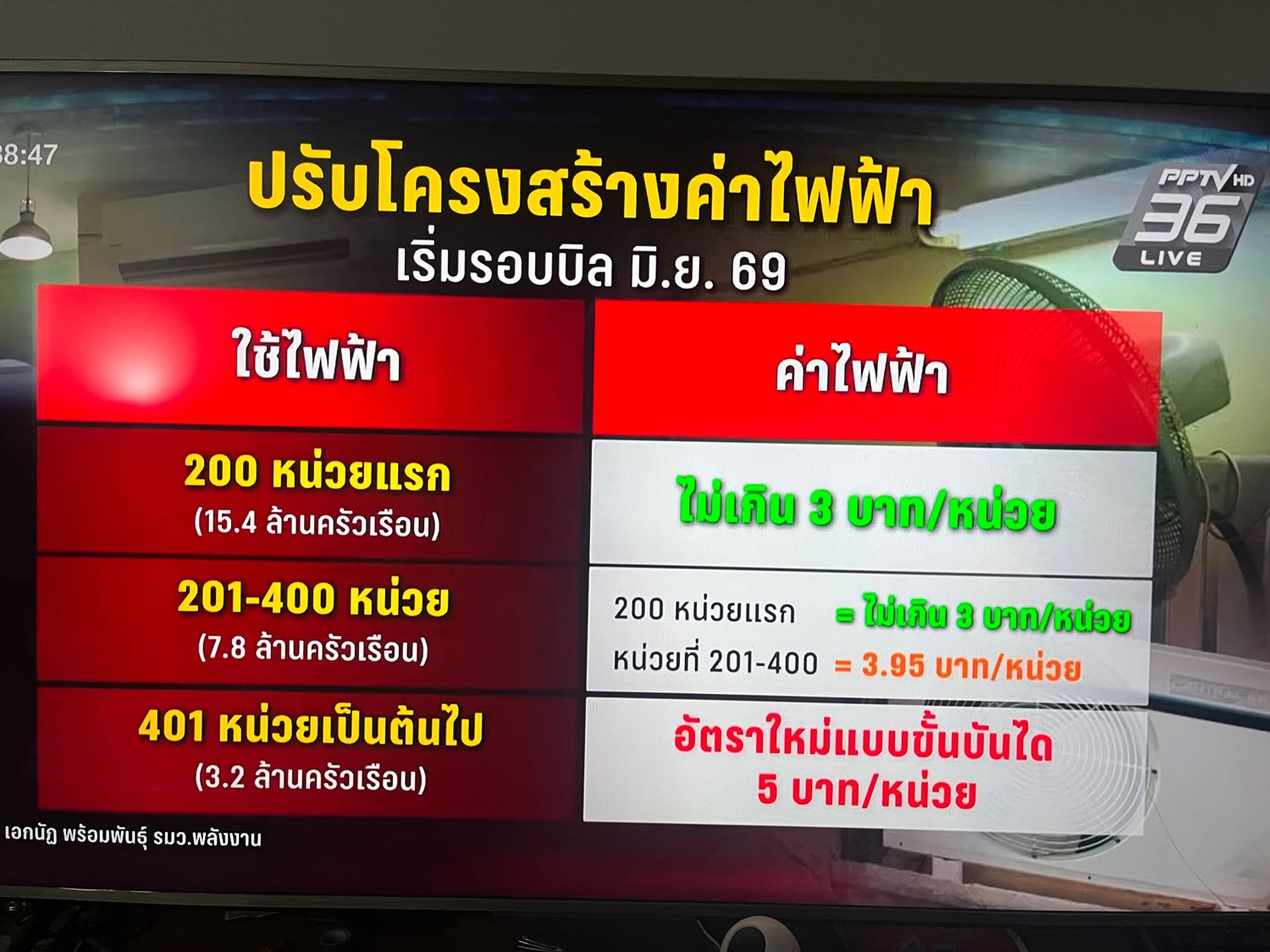 ปรับโครงสร้างค่าไฟฟ้า เริ่ม รอบเบิล มิ.ย.69