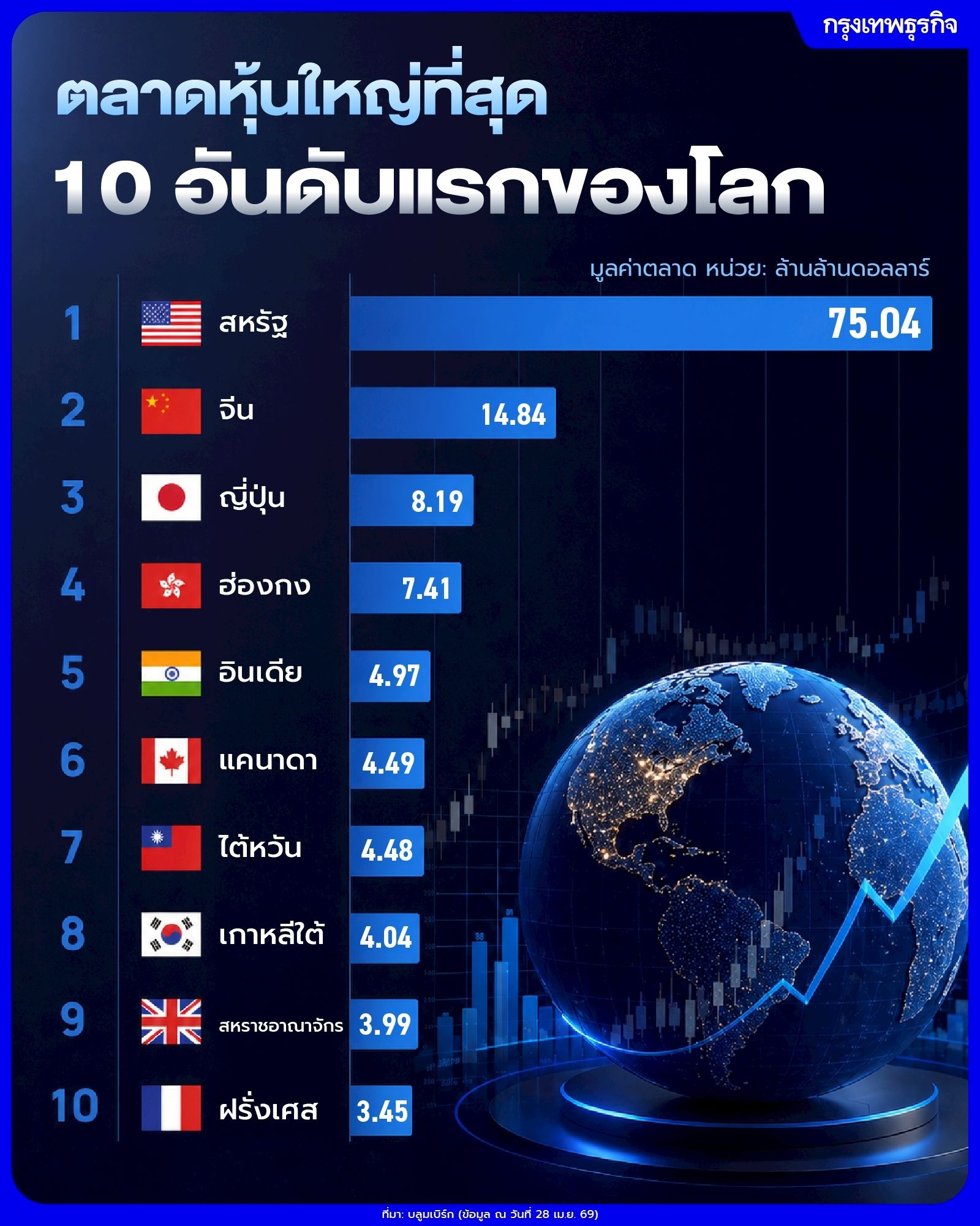 ตลาดหุ้นใหญ่ที่สุด 10 อันดับแรกของโลก เกินครึ่งเป็นตลาดเอเชีย