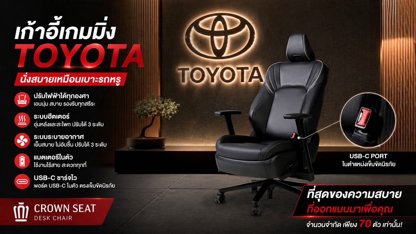เก้าอี้เกมมิ่งระดับรถหรู! Toyota เปิดตัว Crown Seat ราคาแสนกว่า มีทั้งฮีตเตอร์-แอร์ในตัว 😳
