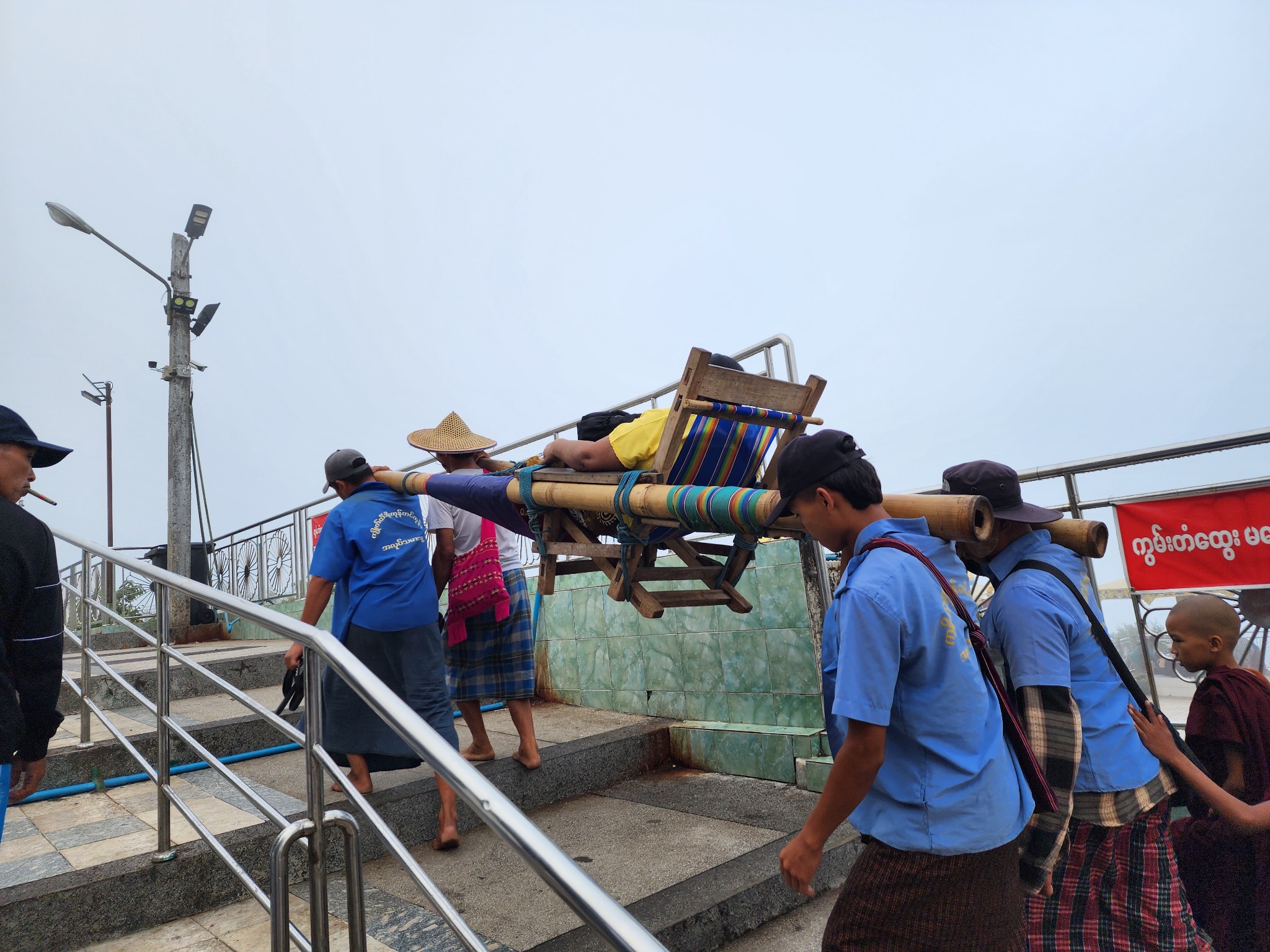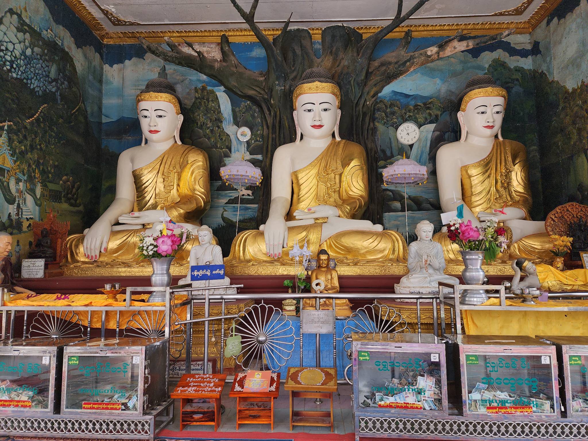 แต่อีกจุดที่ได้พบเห็นคือ ที่นี่ รวมถึงวัดต่าง ๆ ในพะโค จะมีผู้คนมาปูเสื่อ มานั่ง/นอน ภายในวัดจำนวนมาก ไกด์ได้อธิบายว่า ส่วนมากจะเป็นคนในพื้นที่ ที่มาพักผ่อนภายในวัด เมื่อผมได้ลองเชื่อมโยงกับสิ่งที่ได้เห็น เมื่อที่นี่ มักไฟดับ เปิดพัดลม เปิดแอร์ไม่ได้ ใช้เครื่องใช้ไฟฟ้าอะไรก็ไม่ได้ การมาวัดที่บรรยากาศร่มรื่นเย็นสบายกว่า และได้มาพบปะกับผู้คน แทนการนอนร้อน ๆ ที่บ้าน ก็เป็นเรื่องที่สมเหตุสมผลที่สุดแล้วครับ