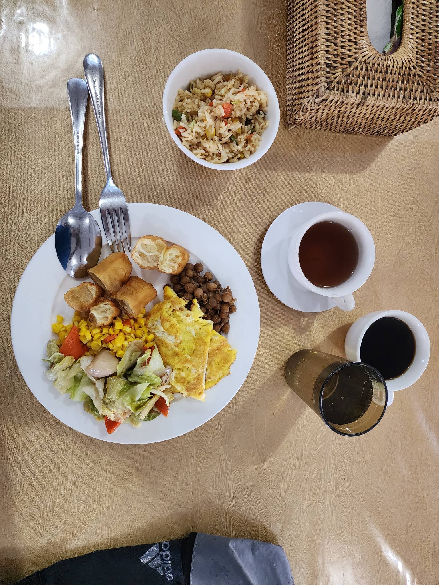 กลับมาทานอาหารเช้าแบบ Breakfast ที่โรงแรมครับ เมนูทุกอย่างแทบจะทำสดใหม่หรือเป็นวัตถุดิบภายในประเทศทั้งหมด เนื่องจากยังไม่มีการค้าขายกับต่างประเทศมากนัก อะไรที่เป็นภาพจำของอาหารเช้าโรงแรม ขนมปัง ไส้กรอก แฮม ไม่มีเลยครับ ของอินเตอร์ที่สุดบนโต๊ะก็คือกาแฟยี่ห้อสีแดงที่นำเข้าจากบ้านเรานี่เองครับ