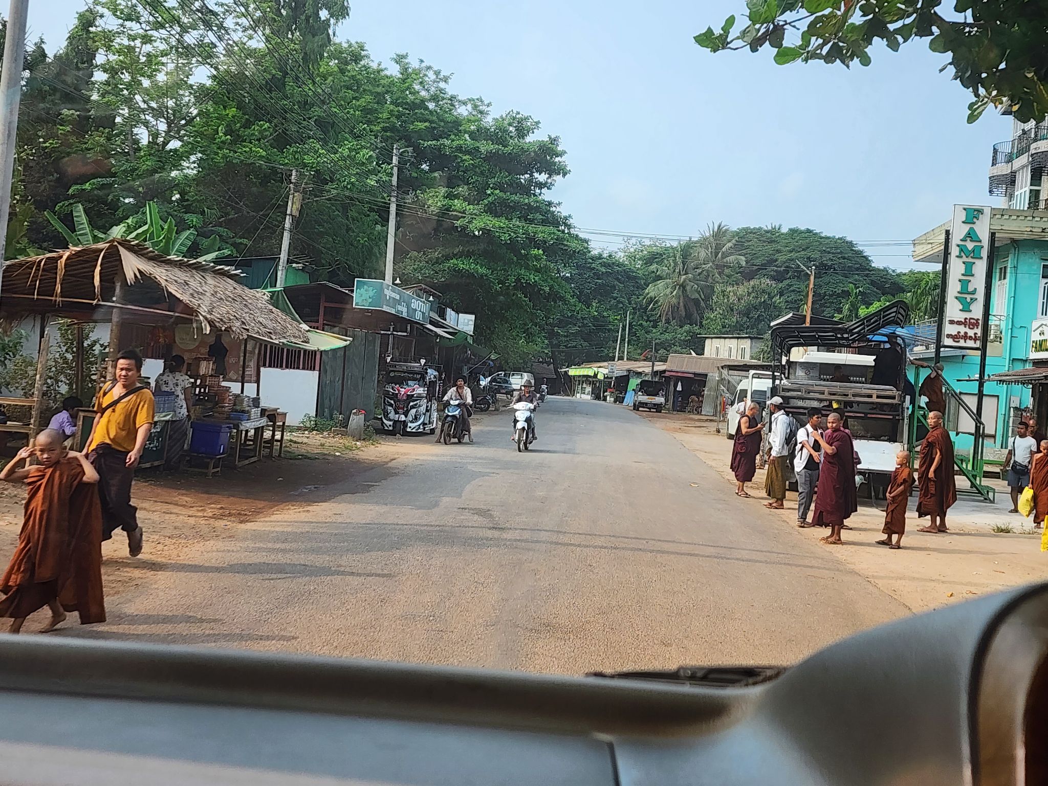 เดินเท้าจากโรงแรมไปยังพระธาตุ พร้อมซึมซับวิถีชีวิตของผู้คนที่นี่ มีทั้งออกมาทำงาน ออกมาไหว้พระธาตุ ออกมาใส่บาตรครับ