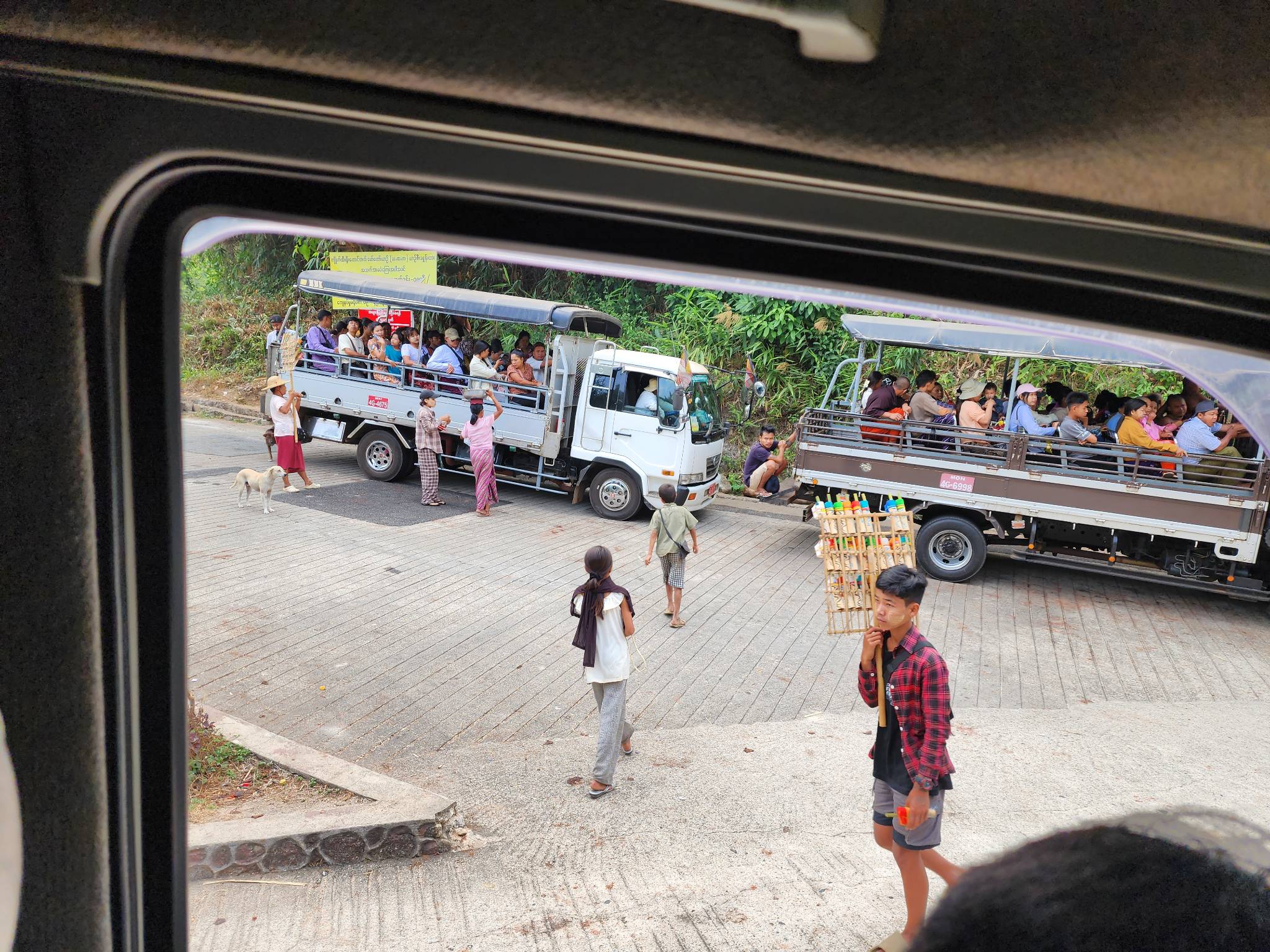 จากนั้นจึงเดินกลับไปที่ท่ารถเพื่อเตรียมลงจากเขาครับ ระหว่างทาง จะเจอกลุ่มพ่อค้าแม่ค้าโปรโมทขายของเป็นระยะ เกือบทุกร้านพูดเป็นภาษาไทย โดยเฉพาะกลุ่มเด็ก ๆ จะพูดได้ชัดมาก ยังไงก็ตามสำหรับเด็กที่นี่ อาจมีการเอาของมาใส่มือมาคล้องแขนอยู่บ้าง ตรงนี้อยากให้ใช้วิจารณาณและฟังหูไว้หูครับ ที่แน่ ๆ ด้วยความเป็นเด็ก เมื่อเราให้เงินใครคนนึง ที่เหลือจะกรูมารุมเลย แต่โดยรวมก็เป็นไปตามประสาเด็กครับ ทางผมไม่ได้ซื้อเ็นพิเศษแต่ให้ขนมจากเมืองไทยแทน ทุกคนก็มีความสุขกัน