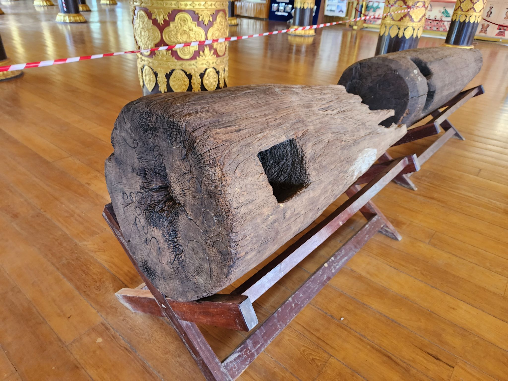 ชิ้นส่วนฐานรากไม้ของตัวพระราชวังเดิม เป็นเกล็ดประวัติศาสตร์ที่น่าสนใจครับ ในภูมิภาคนี้สิ่งก่อสร้างที่มีผู้คนอาศัยจะสร้างด้วยไม้ ซึ่งน่าเสียดายที่ทางฝั่งอยุธยาเหลือเพียงส่วนที่เป็นโครงสร้างแบบหิน โดยไม่เหลือสิ่งก่อสร้างที่ทิ้งโครงสร้างแบบไม้ให้เห็น