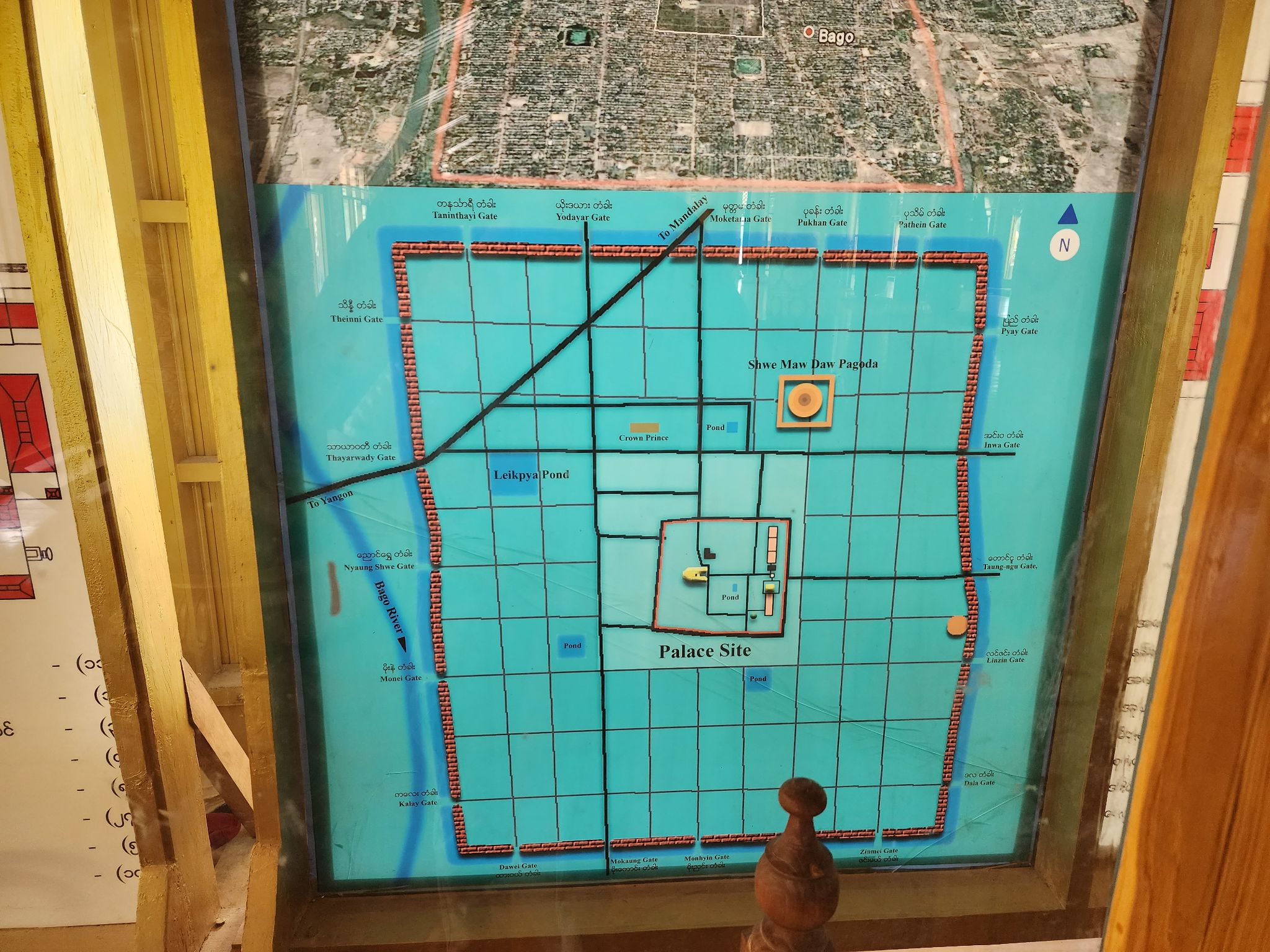 ภาพแสดงผังเมืองของพะโคในยุคนั้นครับ สังเกตว่ามีการวางโครงสร้างแบบสี่เหลี่ยมด้วยระบบคลองคูเมือง หากจะเปรียบเทียบให้เห็นภาพก็จะใกล้เคียงกับคูเมืองเชียงใหม่