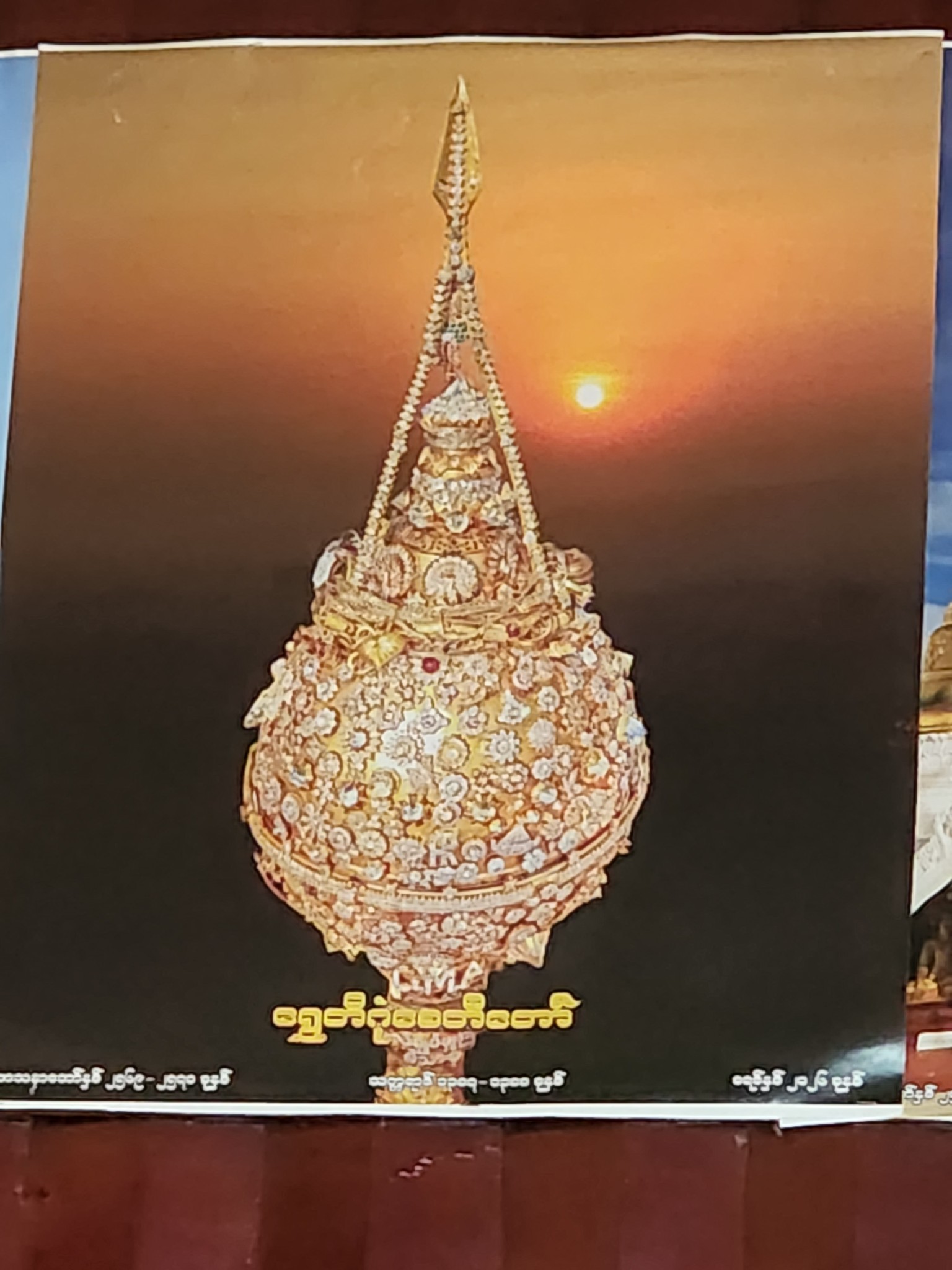 ภาพที่แปะอยู่ในร้าน เป็นยอดของเจดีย์ชเวดากองที่ย่างกุ้งครับ ซึ่งประดับไปด้วยเพชรมากมาย เม็ดที่ใหญ่ที่สุดหนักถึง 76 กะรัต ผมเองเคยได้ยินเรื่องราวนี้มา ก็พึ่งได้เห็นภาพแบบชัด ๆ ก็ในวันนี้นี่เอง