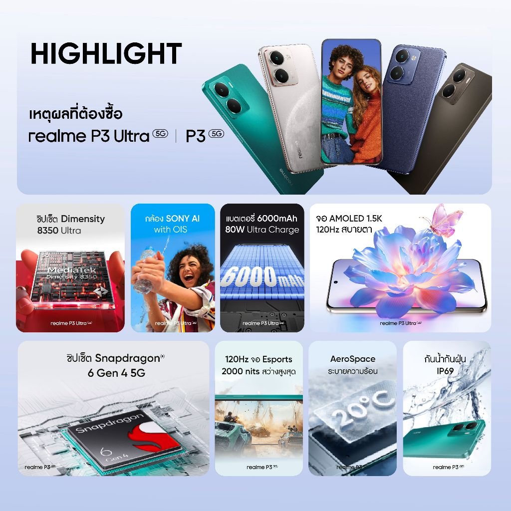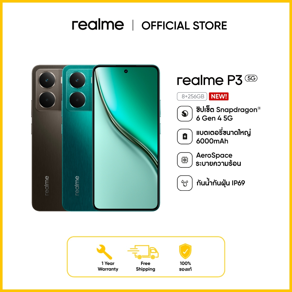 📱🔋 มือถือ realme P3 5G 8+256GB ชิป Snapdragon แบต 6000mAh จอ AMOLED 📸🎮