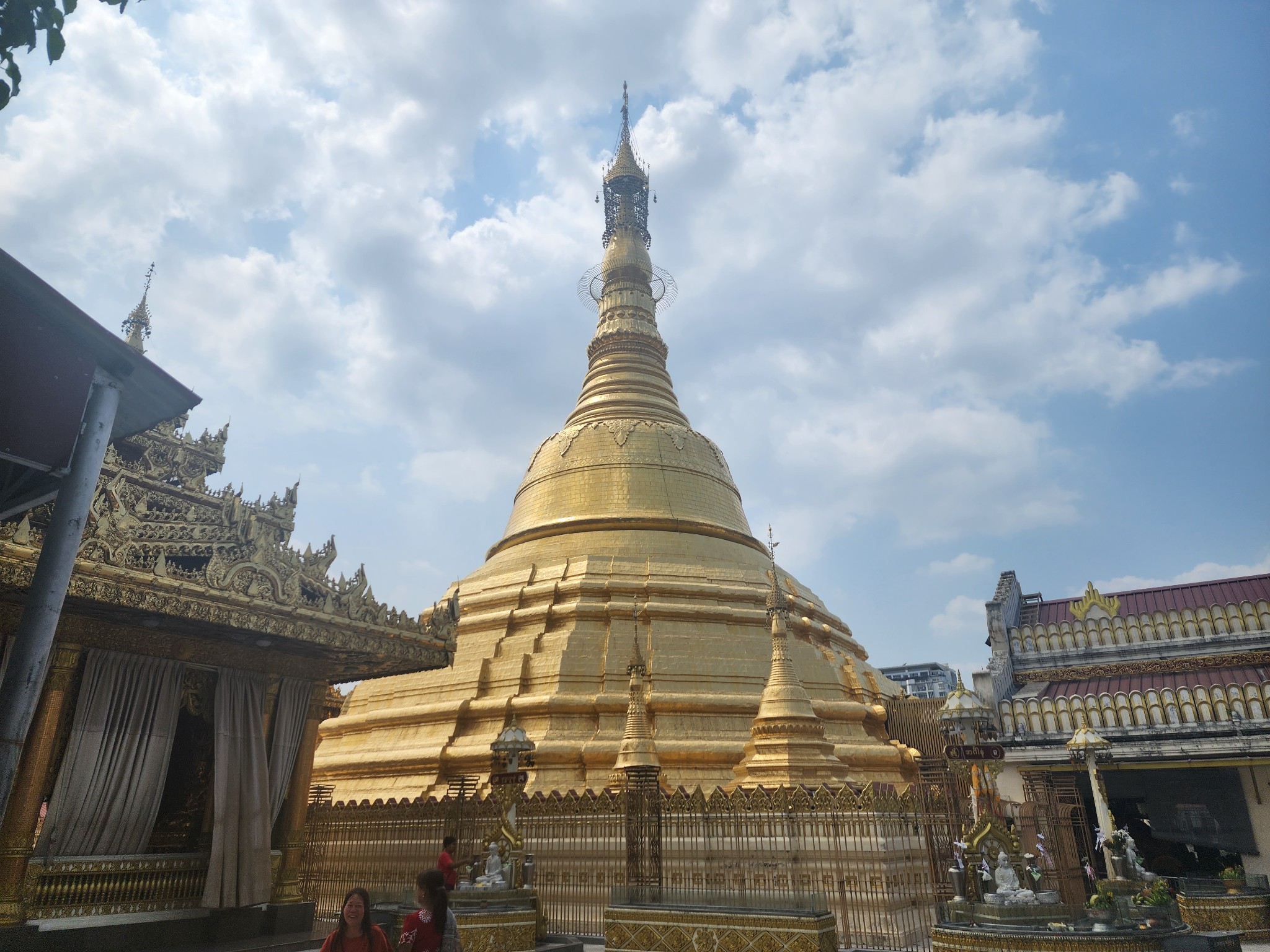 เจดีย์ชูเล่ มัสยิดเบงกาลี ตั้งอยู่ข้าง ๆ กัน และถ้ากลับหลังหันจากในภาพ จะมีโบสถ์คริสต์ ไม่รวมกับวัดแขกที่เจอระหว่างทางอีก แสดงถึงความหลากหลายทางวัฒนธรรมของที่นี่ได้เป็นอย่างดี
