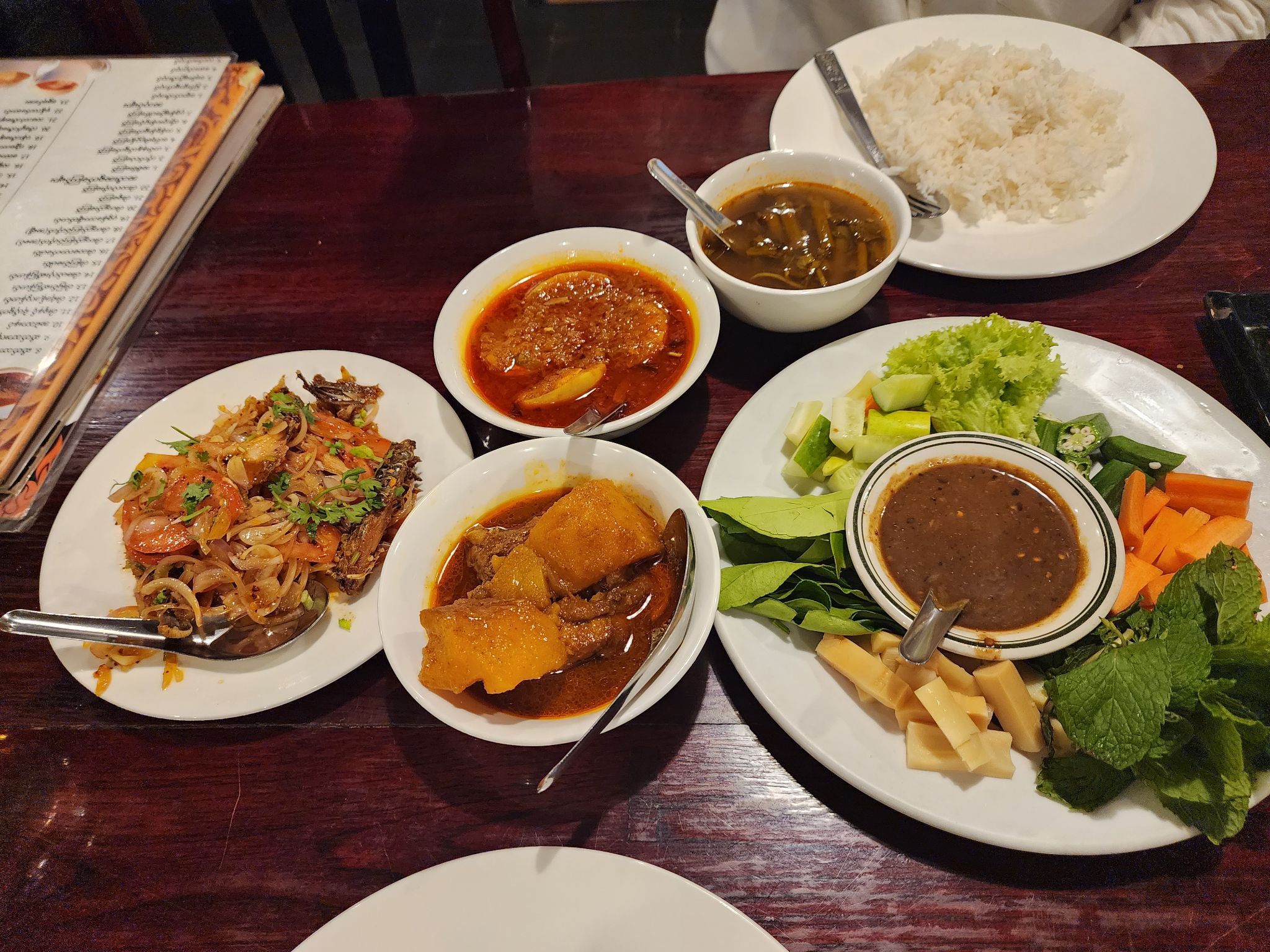 กลับมาทานอาหารแบบพม่าอีกครั้ง ด้วยอาหารบ้านเขามีผักและซุปอยู่เสมอ ต่อให้แกงจะค่อนข้างมันและข้าวเยอะ (ลืมอีกเรื่องที่นี่เขาตักข้าวให้เยอะมาก เคยได้เยอะกว่าในภาพอีกครับ) ทำให้ผู้คนที่นี่ส่วนมากมีรูปร่างผอมเพรียวกันหมดเลยครับ และเขาไม่กินจุบจิบครับ จบมื้ออาหารก็คือจบ ไม่มีร้านน้ำ ร้านขนมทุกมุมแบบบ้านเรา
